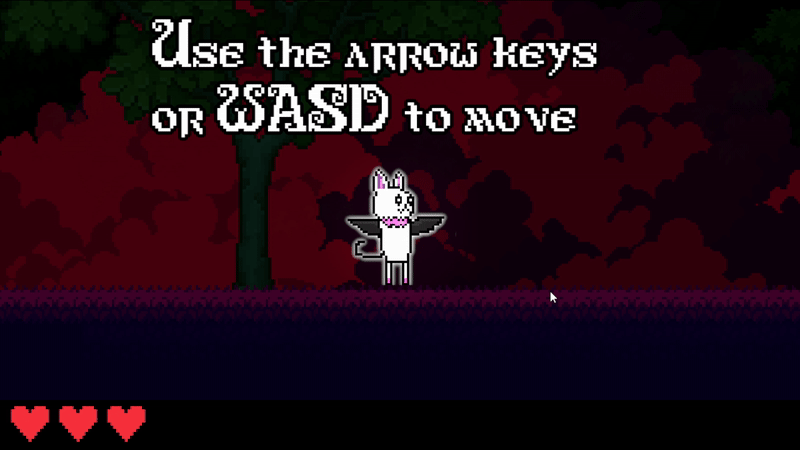 The player has 3 hearts, damage translates to a loss of half a heart. Upon losing all of them, the game transitions to a game over screen: